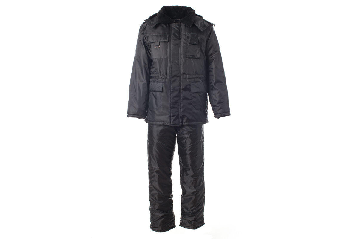 Зимний костюм СПРУТ Охранника черный, р. 52-54/104-108, рост 182-188, 100275 защищает от пониженных температур, общих производственных загрязнений и истирания, в состав входят куртка и полукомбинезон.