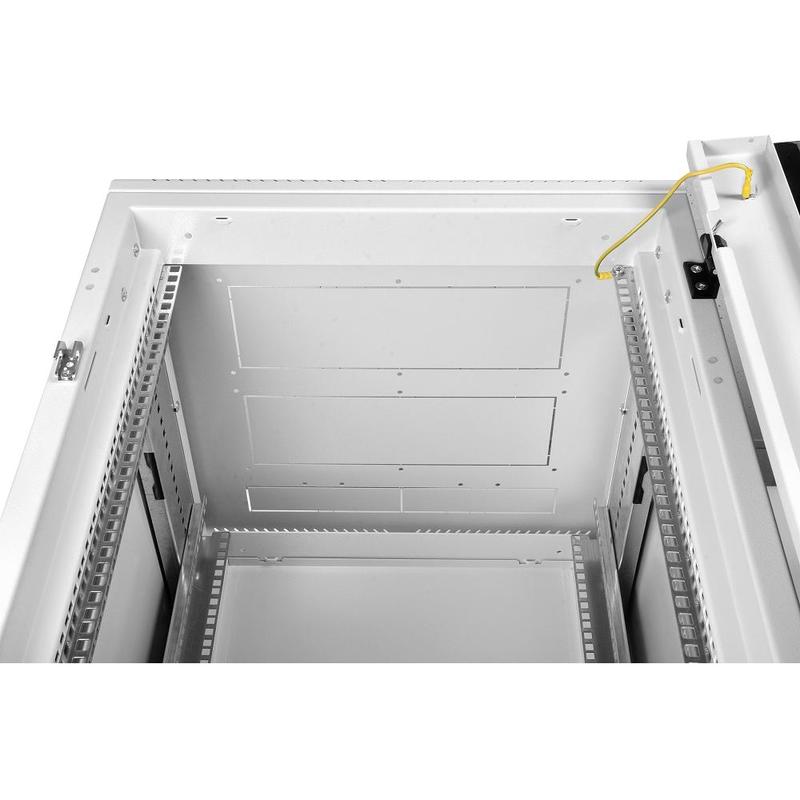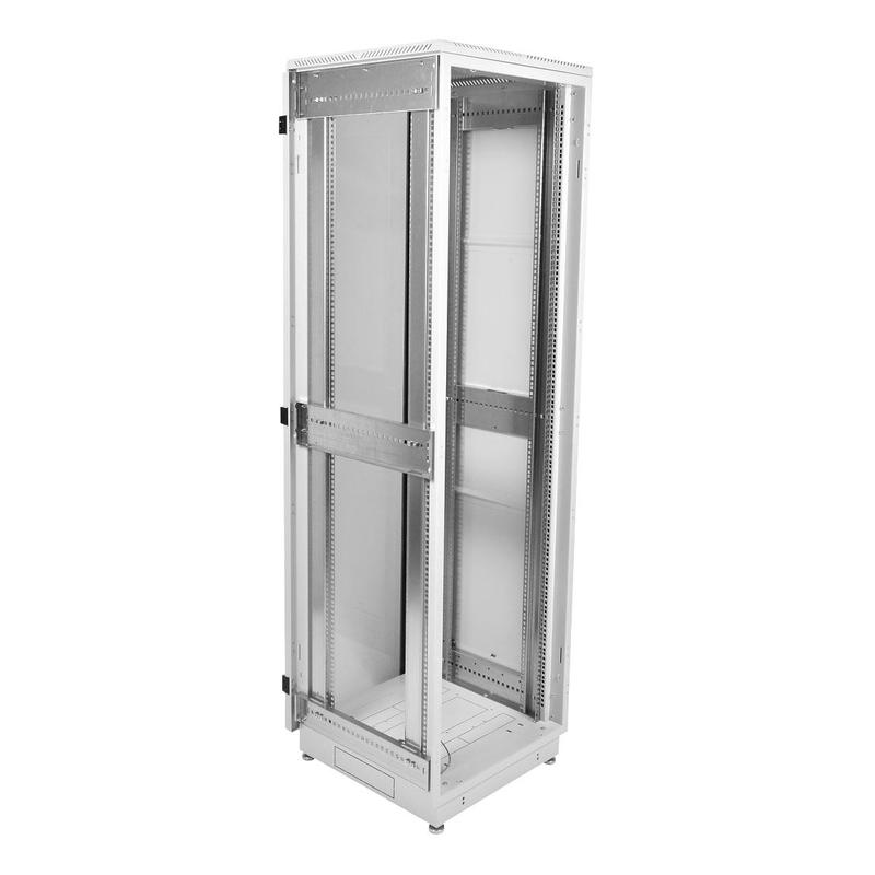 Напольный шкаф серии ШТК-М предназначен для размещения активного и пассивного телекоммуникационного оборудования, в офисных и закрытых промышленных помещениях. Класс защиты IP20. Шкаф имеет разборную каркасную конструкцию. Состоит из основания, крыши и двух сварных рам, соединенных комплектом швеллеров (сталь 2мм.). Легок в сборке. За счет элементов крепления каркас шкафа имеет повышенную жесткость, в зависимости от модификации возможна распределенная нагрузка до 1010 кг. ШТК-М комплектуется усиленными боковыми стенками. Стенки надежно фиксируются пластиковыми защелками и точечными замками.Стандартно шкафы комплектуются задней металлической стенкой, и тремя видами дверей: цельнометаллической, с тонированным ударопрочным стеклом, и дверью с перфорацией. Возможна комплектация двумя дверьми, исключающая заднюю стенку. В шкафах 18-38U, дверь фиксируется усиленным точечным замком, 42-47U ригельным. Двери имеют как правую, так и левую навеску. В шкафах предусмотрены места для установки вентиляторных модулей серии R-FAN. Для установки модуля демонтируется заглушка в крыше либо основании шкафа, и модуль надежно фиксируется винтами. В основание или крышу ШТК-М глубиной 600-800 мм возможна установка двух вентиляторных модулей, в шкафы глубиной 1000 мм - трех модулей. Крыша имеет дополнительную перфорацию и заглушенные отверстия под кабельные вводы - 55х420 мм, в них предусмотрена установка комплекта щеточного ввода КВ-Щ-55.420А либо двух комплектов КВ-Щ-55.210А. Основание шкафа имеет такие же заглушенные отверстия под кабельные вводы - 55х420 мм, в которые устанавливается комплекта щеточного ввода КВ-Щ-55.420А либо двух комплектов щеточного ввода КВ-Щ-55.210А, а на боковых поверхностях основания (кроме фасада) - три кабельных ввода размером 250х62 мм (установка щеточного ввода не предусмотрена). В основание шкафа установлены винтовых опор (ножек) позволяющих компенсировать неровности пола. Возможна установка поворотных роликов различной нагрузочной способности (в комплект поставки не входят). Доступ для монтажа, коммутации и обслуживания оборудования возможен с четырех сторон, через боковые легкосъемные стенки, переднюю и заднюю двери. Шкаф имеет 4 оцинкованные вертикальные направляющие, регулируемые по глубине. Система заземления входит в стандартную комплектацию. В ШТК-М шириной 800 мм. предусмотрено дополнительное пространство для организации коммутационного кабеля. Шкафы поставляются разобранными, в компактной упаковке. ШТК-М высотой 18-27U упакованы в два транспортных места, 33-47U в три места.Производитель имеет право вносить изменения в конструкцию изделия без ухудшения его функциональных характеристик. Шкаф выполнен в соответствии с требованиями стандарта IEC 60 297 Конструкции механические серии 482,6 (19 дюймов).