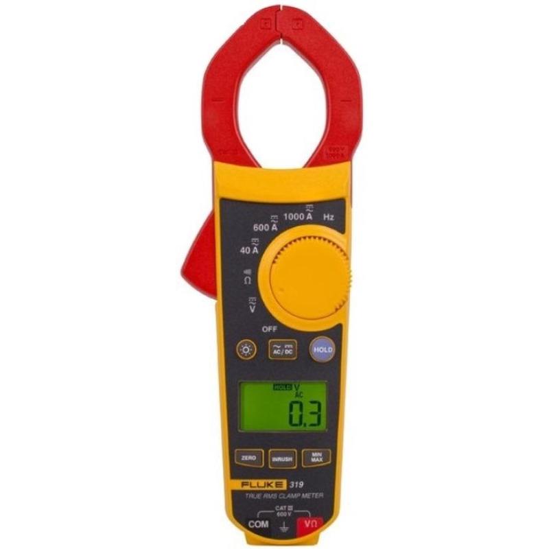 Токоизмерительные цифровые клещи Fluke 319 разработаны в соответствии с эргономичной концепцией, они удобно лежат в руке и позволяют легко работать в ограниченном пространстве. Эти небольшие и прочные токоизмерительные клещи идеально подходят для измерений силы тока до 1000, А в тесных кабельных отсеках. Fluke 319 также имеют функцию измерения постоянного и переменного тока и большое разрешение для нагрузок меньше 40 A. Помимо компактного размера и впечатляющего набора функций Fluke 319 также снабжен функциями измерения пусковых токов и частоты для проверки электродвигателей, приборов освещения и т. п.Fluke 319 — это универсальные токовые клещи, оснащенные функцией определения истинных среднеквадратических значений True RMS. Прибор подходит для регулярного использования специалистами, работающими в области электроснабжения. Токоизмерительные клещи Fluke 319 позволяют заменить собой несколько различных инструментов, ведь в одном легком и компактном корпусе совмещены возможности амперметра, вольтметра, омметра, индикатора целостности цепи, измерителя целостности частоты выходного сигнала ШИМ. Отдельная функция измерения пускового тока предназначена для определения мгновенных значений пусковых токов электроприборов или осветительного оборудования со временем интеграции 100 милисекунд.Токовые клещи Fluke 319 имеют три диапазона измерения как постоянного, так и переменного тока — 40, 600 и 1000, А с разрешением 0,01, 0,1 и 1, А соответственно. Целостность электрической цепи проверяется в диапазоне до 30 ОМ, а измерения сопротивления — до 4000 Ом. Отличительной особенностью клещей Fluke 319 является возможность точных измерений характеристикчастотно-регулируемых приводов с широтно-импульсной модуляцией.Устройство имеет 37-мм охват клещей и подойдет для большинства самых распространенных измерений на проводах и силовых кабелях различного сечения. Удобный корпус прибора надежно лежит в ладони, и все измерения вы можете выполнять одной рукой. Изменение режимов работы Fluke 319 осуществляется путем поворота круглого переключателя большим пальцем, а все данные отображаются на большом жидкокристаллическом дисплее с 6000-ной разрядностью. Для работы в условиях недостаточного освещения предусмотрена подсветка экрана.Прочный корпус обеспечивает надежную защиту Fluke 319. Прибор соответствует третьему классу электробезопасности (600В CAT III) и защищен от перегрузок и скачков напряжения в диапазоне 600В.