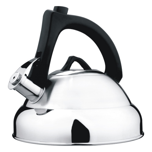 Со свистком, ручка бакелитовая фиксированная, крышка из нержавеющей стали, капсулированное дно, стенка 0,5мм, поверхность матовая с зеркальной полосой.