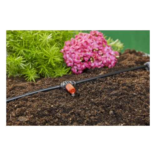 С помощью концевой капельницы GARDENA осуществляется легкий и рациональный полив посаженных рядами растений с одинаковой потребностью в воде.