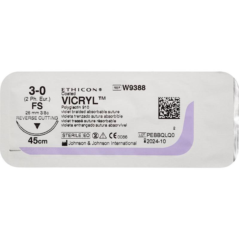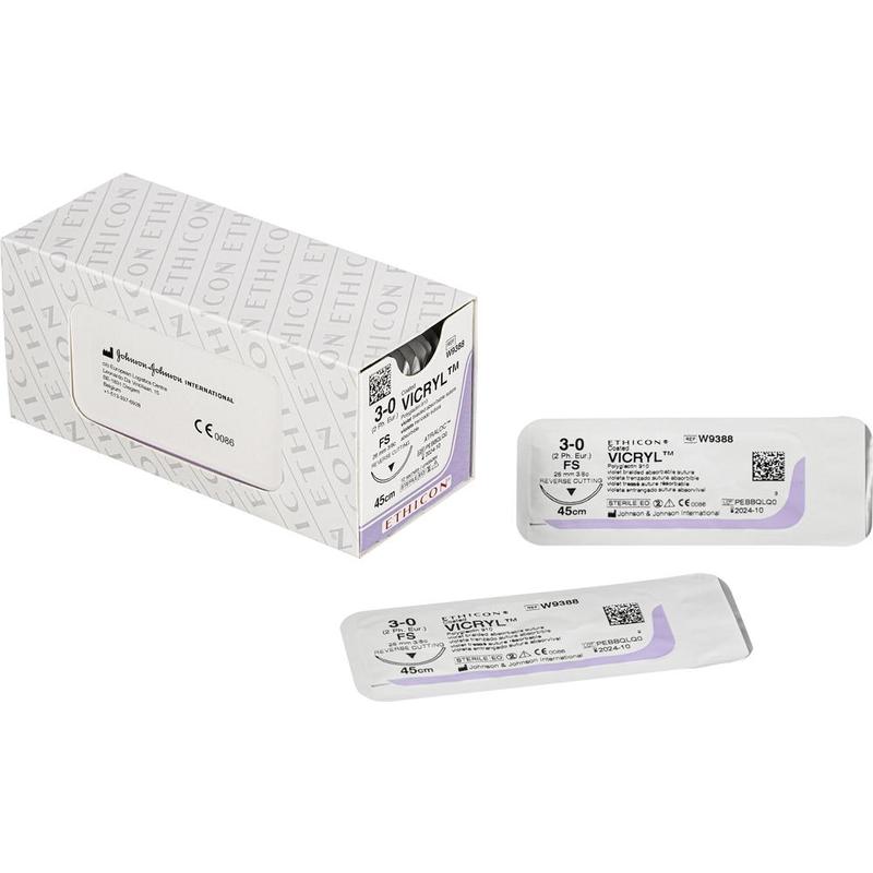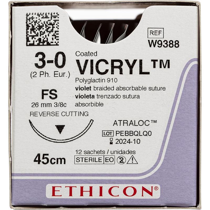 Шовный материал ВИКРИЛ 3/0 45 см обратно-режущая игла 26 мм 3/8 W9388 (12 штук в упаковке)