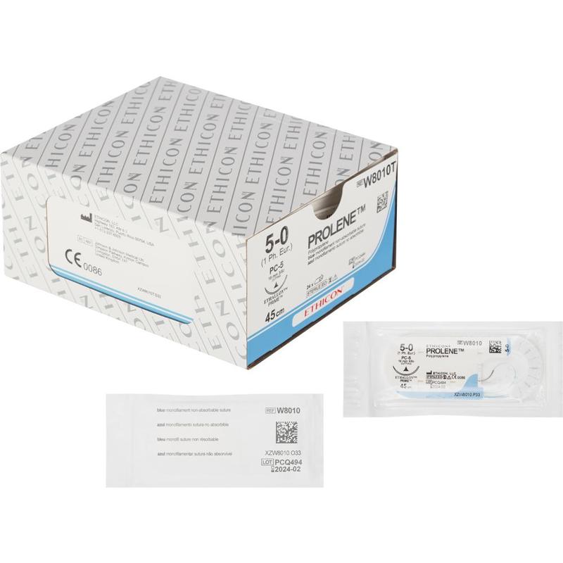 Шовный материал ПРОЛЕН 5/0 45 см режущая игла 19 мм 3/8 W8010T (24 штуки в упаковке)