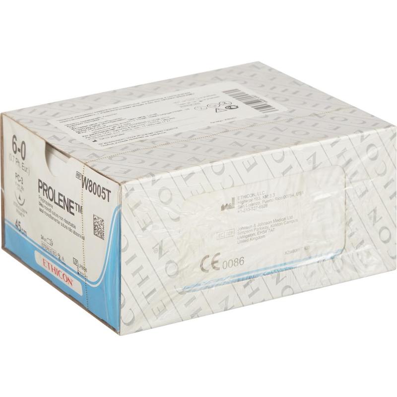 Шовный материал ПРОЛЕН 6/0 45 см режущая игла 16 мм 3/8 W8005Т (24 штук в упаковке)