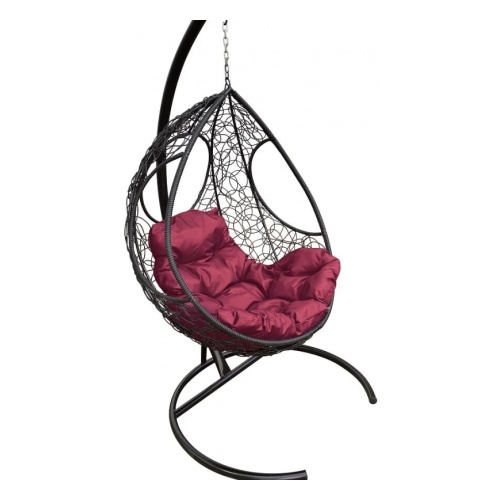 Подвесное кресло-кокон М-ГРУПП "Долька" ротанг черное+бордовая подушка 7930095244757