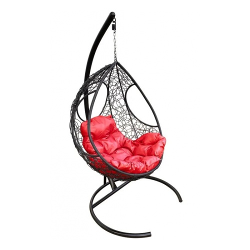 Подвесное кресло-кокон М-ГРУПП "Долька" ротанг черное+красная подушка 7930095244764