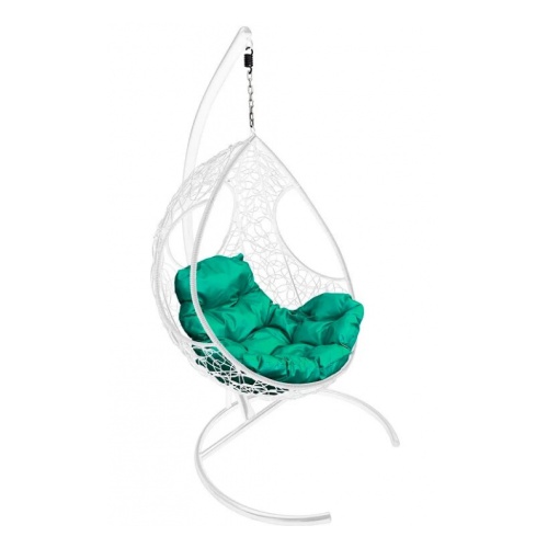 Подвесное кресло-кокон М-ГРУПП "Долька" ротанг белое+зеленая подушка 7930095244856