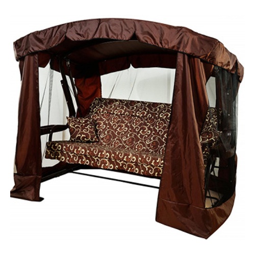 Габариты изделия (ШхДхВ) : 2100х1400х1800Цвет каркаса : коричневыйМатериал каркаса : стальТруба : Ø51Цвет чехла мягкого элемента/матраса : коричневыйТип основания сиденья : сварная сеткаДопустимая нагрузка : 350Регулировка спинки : ДаПодушки : ДаМоскитная сетка : ДаПодголовник : ДаМеханизм наклона : звеньями цепи на требуемый угол наклона, с фиксацией в горизонтальном положении