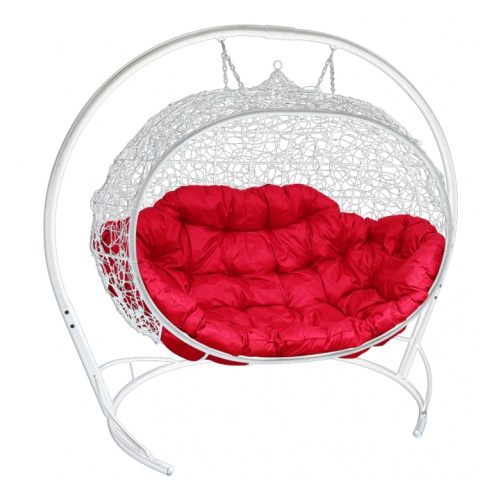 Подвесное кресло М-ГРУПП Улей белый ротанг +красная подушка 7930095242500