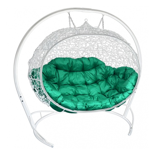 Подвесное кресло М-ГРУПП Улей ротанг белый+зеленая подушка 7930095242531
