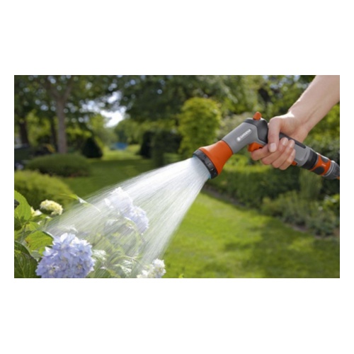 Плавная регулировка расхода воды - Поток воды регулируется одной рукой.Фиксатор позволяет осуществлять длительный полив без необходимости постоянно нажимать на курок.