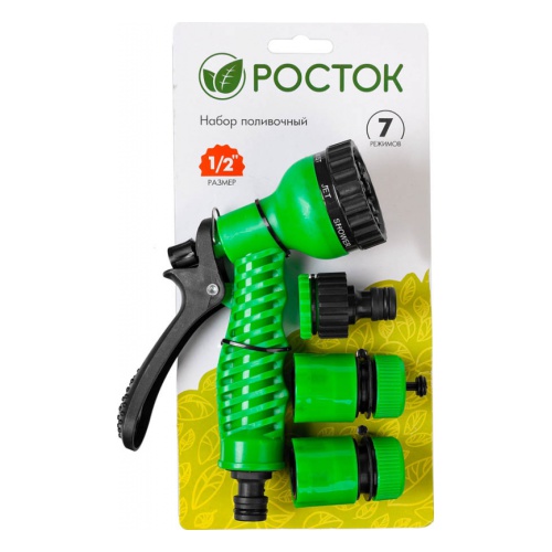 Набор поливочный РОСТОК: Распылитель пистолетный 7 поз., 2 соединителя 1/2", адаптер внешний, 427368