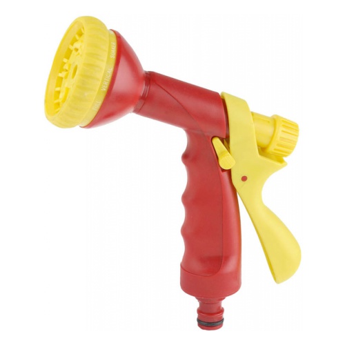 Пистолет-распылитель GRINDA 8-427373_z01, предназначен для полива растений при подключении к садовому шлангу с помощью соединителя. Регулировка полива осуществляется выбором одного из 10 режимов: жесткая струя, слабая струя, конус, центр, окружность. плоская струя, душ, вертикальный полив, орошение под углом, аэрирование. Регулятор напора воды. Эргономичная рукоятка имеет фиксатор для обеспечения непрерывного полива.