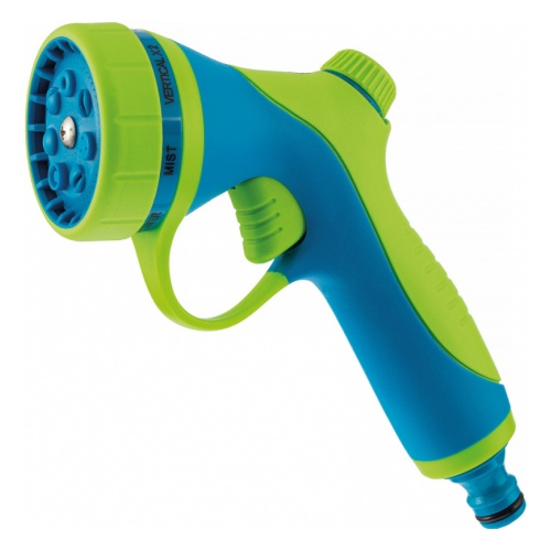 Пистолет-распылитель со штуцерной посадкой и удобным курком, расположенным спереди. Оснащен регулируемой форсункой, что обеспечивает семь режимов полива: двойную плоско-вертикальную струю, жесткую струю, сочащийся режим, двойную плоско-горизонтальную струю, душ, распыление типа «туман», конусное распыление. Имеет фиксатор курка для непрерывной работы и регулятор напора воды для мягкого полива. Предназначен для всех типов полива на дачных участках, в садах, парках и скверах, а также для очистки. Совместим со всеми элементами системы полива Palisad и Palisad Luxe. Корпус и курок пистолета изготовлены из высококачественного АБС-пластика, рукоятка залита термопластичной резиной, что обеспечивает максимальный комфорт при работе с инструментом.
