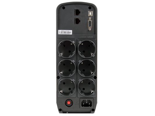 - Выходные разъёмы питания 3 розетки евростандарт с заземлением, 3 розетки евростандарт без резервного питания