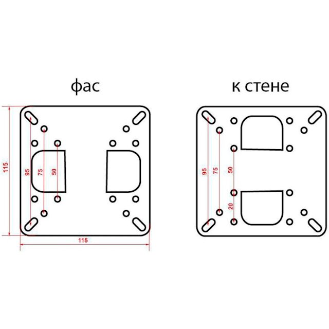 • Стандарт VESA 100 x 100; 75 x 75; 50 x 50;