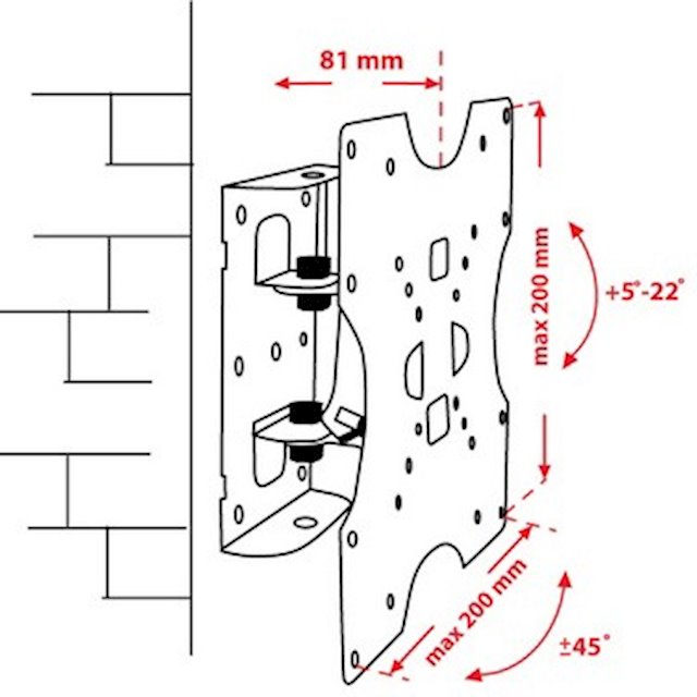 - Стандарт VESA 200 x 200; 200 x 100; 100 x 100; 75 x 75; 50 x 50;