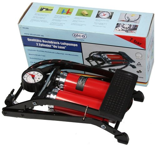 - Описание Ножной насос " Люкс" с двумя цилиндрамиЦилиндр /2х125х47/ и каркас из сталис манометром 270°