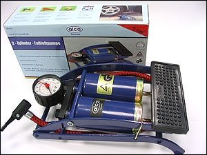- Описание Мощный ножной насос с двумя цилиндрами и манометром Один металлический адаптер для автомобильных шин и вентилей. Один металлический адаптер для мячей. Два пластмассовых адаптера для надувных матрацев и др. объектов.