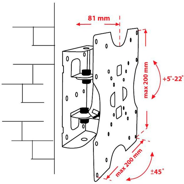 - Стандарт VESA 200 x 200; 200 x 100; 100 x 100; 75 x 75; 50 x 50;