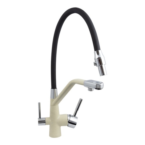 Zigmund & Shtain ZS 2200 - смеситель однозахватный с душем и подключением фильтрованной воды. Одноизливный - фильтрованная и водопроводная вода подаются через один аэратор. Это позволяет не нарушая общего эстетического вида смесителя, получать очищенную и водопроводную воду через одно устройство. Корпус смесителя выполнен из финишной латуни и покрыт декоративным слоем по технологии горячего запекания.