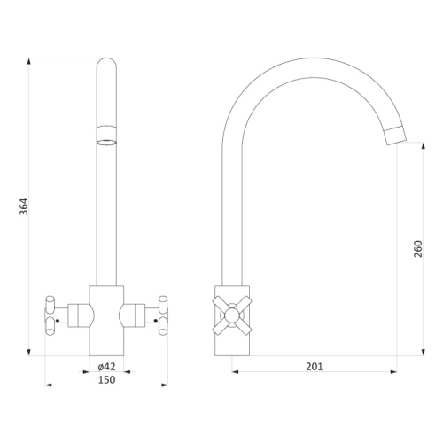 Сантехника как произведение искусства: утонченный излив, оригинальные ручки крестообразной формы и тщательно сбалансированные пропорции.