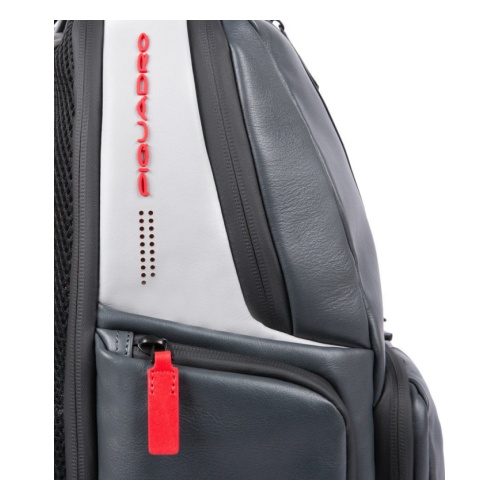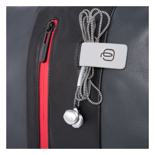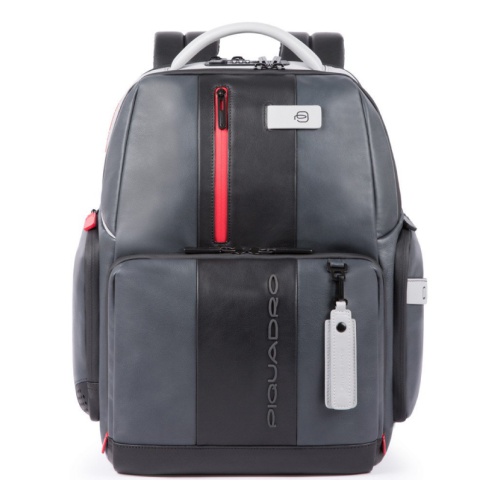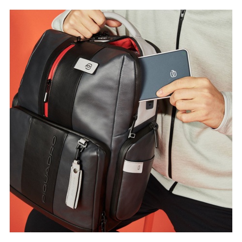 Кожаный бизнес-рюкзак из новой коллекции Piquadro Urban. Рюкзак изготовлен из мягкой телячьей кожи с использованием черненой металлической фурнитуры. Это флагманская модель рюкзака, здесь реализованы такие "фишки", как: кодовый замок на одном из отделений, датчик CONNEQU для отслеживания местоположения рюкзака, RFID защита, позволяющая избежать снятия денежных средств бесконтактным способом, "антиворовской" шнур, с помощью которого можно пристегнуть рюкзак и не беспокоится, что его своруют, USB выходы для зарядки Ваших гаджетов, а также крепеж на чемодан, крючок для очков и брелок с контактной информацией.