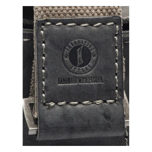 Элегантное тиснение «Klondike» на лицевой стороне и небольшое, ненавязчивое тиснение c надписью 'made with passion' на ремне, мастерски сделаны вручную на высочайшем уровне.
