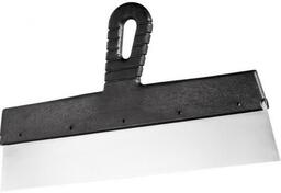 - Прочие особенности и свойства Полотно шпателя изготовлено из нержавеющей стали. Облегченная ручка из ударопрочной пластмассы. Ручка шпателя имеет специальную изогнутую форму, что обеспечивает максимально удобную работу. Шпатель предназначен для нанесения, выравнивания и сглаживания шпаклевочного слоя на больших и малых поверхностях.