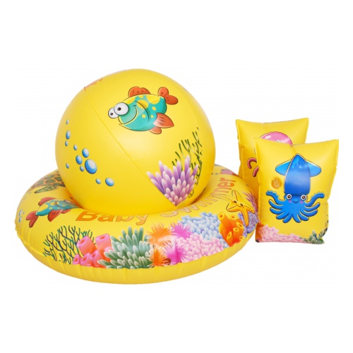 Набор для купания ""Baby Swimmer"" с изображением мультипликационной рыбки, черепашки и кита создан специально для того, чтобы помочь детям научится держаться на воде, обеспечить безопасность первых уроков пребывания у моря и подарить радость активных игр в аквапарке.