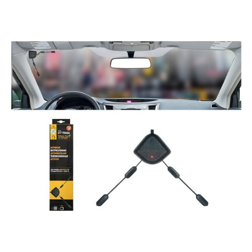 Сдвоенная телевизионная автомобильная антенна "Триада-617" для качественного приема в диапазонах DVB-T и DVB-T2. Если у Вас автомобильный тюнер или магнитола с двумя входами под ТВ, Вам идеально подойдет суперкомпактная активная антенна Триада 617, разработанная именно для этого случая. У нее 2 DVBT-2 выхода, антенна устанавливается в угол лобового стекла. Если в тюнере 4 входа, понадобится 2 антенны "Триада-617", одну в правый верхний, другую в левый верхний угол лобового стекла.