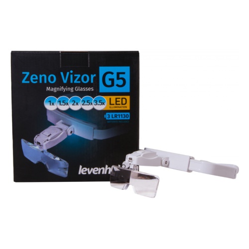 Лупа-очки Levenhuk Zeno Vizor G5 предназначена для работы с мелкими предметами рукоделия, моделизма, ремонта микроэлектроники, часовых работы, оценки ювелирных изделий и многого другого. Она комплектуется пятью сменными линзами, которые легко меняются для получения подходящего увеличения. Однократная линза может использоваться для защиты глаз при выполнении монтажных работ, линзы с увеличением подходят для изучения мелких объектов.Лупа-очки Levenhuk Zeno Vizor G5 фиксируется на голове, поэтому руки во время работы остаются полностью свободными. Регулируемое телескопическое крепление позволяет подобрать подходящую длину дужек. Еще одна удобная функция &ndash возможность изменения угла наклона установленной линзы. При необходимости ее можно отвернуть наверх, что даст возможность увидеть рабочую область без увеличения.Levenhuk Zeno Vizor G5 снабжена встроенной подсветкой. Она состоит из двух светодиодов, которые питаются от батареек. Лупой можно пользоваться даже в полной темноте. Угол наклона подсветки регулируемый.