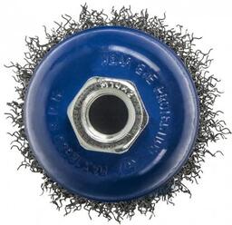 - Описание Кордщетка ПРАКТИКА 032-423 65мм М14, чашеобразная мягкая, блистер Для угловых шлифмашин. Резьбовая посадка на шпиндель М14. Гофрированная стальная проволока толщиной 0,2мм. Для щадащей обработки дерева, металла, снятия ржавчины, тонких слоев краски.
