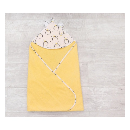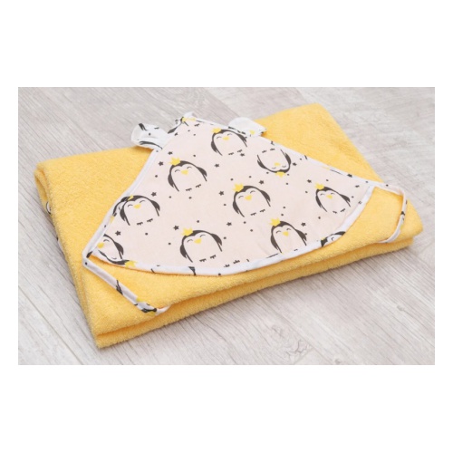 Полотенце детское с уголком Amarobaby Cute Love Пингвины, желтый, 90*90 см AMARO-54CL-Pi
