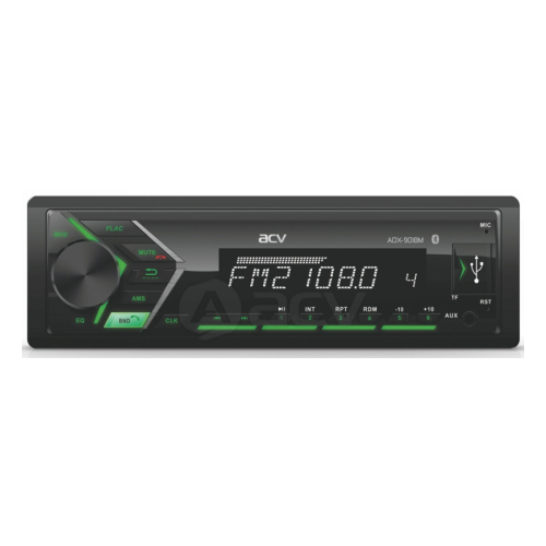 Процессорная магнитола ACV ADX-901BM с FLAC Встроенный радиомодуль обеспечивает качественный прием станций в FM диапазоне Bluetooth модуль для подключения мобильных устройств с поддержкой профилей A2DP, AVRCP, HFP USB слот предназначен для подключения к магнитоле внешних устройств для зарядки (до 1,5А) или воспроизведения музыки SD слот для подключения карт памяти стандарта SD 2.0 (SDHC, Secure Digital High Capacity, высокая емкость) c файловой системой FAT32 Встроенный звуковой процессор оригинальной разработки с 13-ти полосным эквалайзером, кроссовером и возможностью поканальной настройки звуковых задержек Поддержка воспроизведения звуковых файлов формата FLAC с разрешением до 24 бит/96 кГц 3 пары RCA разъемов линейного выхода (фронтальные АС + тыловые АС + сабвуфер) VA LCD 2-строчный вертикально ориентированный дисплей ресивера обеспечивает превосходную визуализацию контента и его читабельность в любых условиях. Многоцветная подсветка дисплея и кнопок «Мультицвет» - 7 цветов Поддержка MP3 c чтением русских ID3 тэгов AUX вход для подключения смартфонов и MP3 плееров через разъем для наушников и использования их в качестве источника сигнала Энергонезависимая память устройства позволяет сохранять все настройки ресивера даже после полного длительного отключения