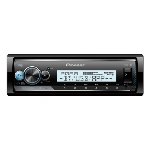 Ресивер Pioneer MVH-MS510BT защищен от воздействия влаги, выцветания и образования пятен, поддерживает технологии Bluetooth, USB, Spotify и многоцветную RGB-подсветку, а также совместим с приложениями MIXTRAX и Pioneer Smart Sync. Благодаря повышенной защите от воздействия окружающей среды, включая прямые солнечные лучи и неблагоприятные погодные условия, модель MVH-MS510BT идеально подходит для установки на морских судах. Передняя панель защищена от УФ-излучения, а на микросхему нанесено конформное покрытие. Опция Bluetooth позволяет удобно и безопасно совершать звонки по беспроводному подключению, а также слушать потоковую музыку со смартфона без проводов. Благодаря уникальной технологии Advanced Sound Retriever качество воспроизведения звука максимально приближено к оригинальной записи. Превосходное качество воспроизведения обеспечивают расширенные функции обработки звука, в том числе встроенный усилитель MOSFET мощностью 4 x 50 Ватт, 3 предварительных выхода RCA, 13-полосный графический эквалайзер, проигрыватель с поддержкой FLAC и динамический усилитель басов. Вы сможете расширить функциональные возможности системы, настроить звучание по своему вкусу и насладиться невероятно реалистичным звуком. С приложением Smart Sync от Pioneer можно без труда подключить смартфон к ресиверу MVH-MS510BT, чтобы наслаждаться любимой музыкой на своей яхте. С ресивером Pioneer MVH-MS510BT можно также использовать дополнительный пульт дистанционного управления Pioneer CD-ME300 (продается отдельно).