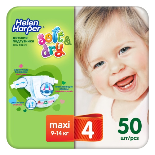 Подгузники Helen Harper Soft&Dry (Хелен Харпер Софт-энд-Драй) Maxi 9-14 кг. (50 шт.) 5411416022534