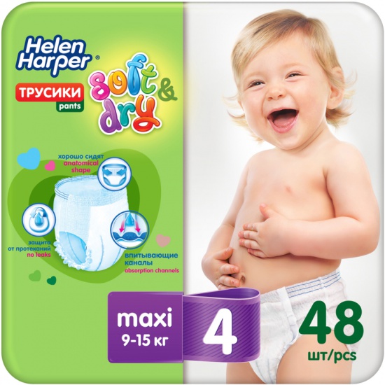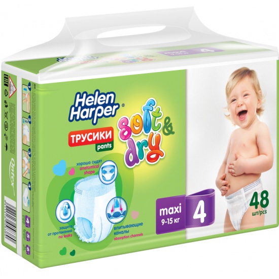 Подгузники-трусики Helen Harper Soft&Dry (Хелен Харпер Софт-энд-Драй) Maxi 9-15 кг. (48 шт.)