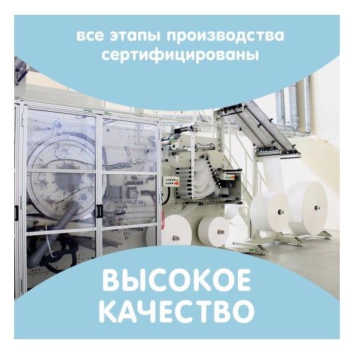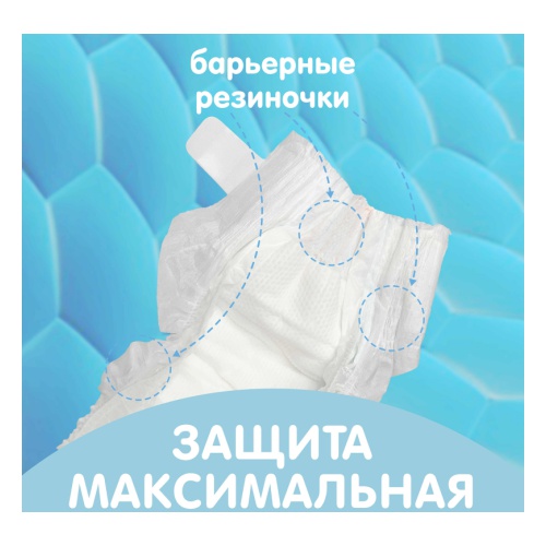 Мягкий рельефный внутренний слой обеспечивает хороший воздухообмен внутри подгузника.