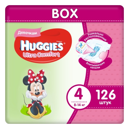 Подгузники Huggies Ultra Comfort (Хаггис Ультра Комфорт) для девочек 4 (8-14 кг), Disney Box, 126 шт.