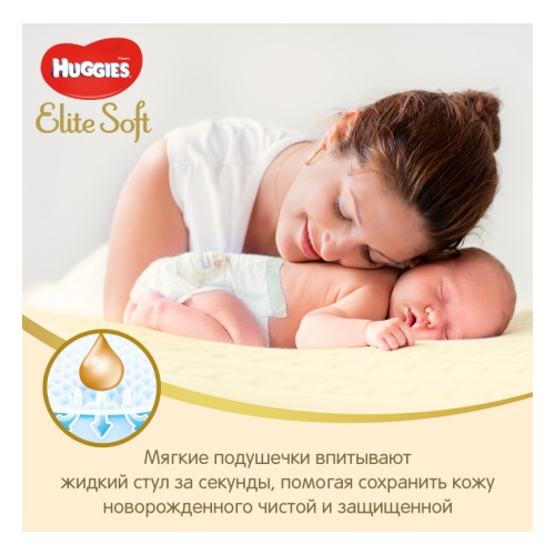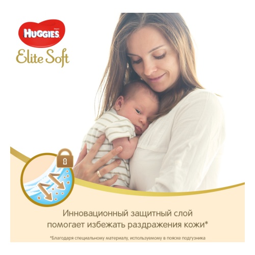 Это единственные подгузники с мягкими подушечками и технологией HappySkin, которая помогает предупредить раздражение кожи новорожденного. Huggies Elite Soft.