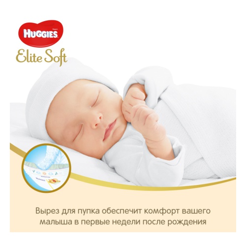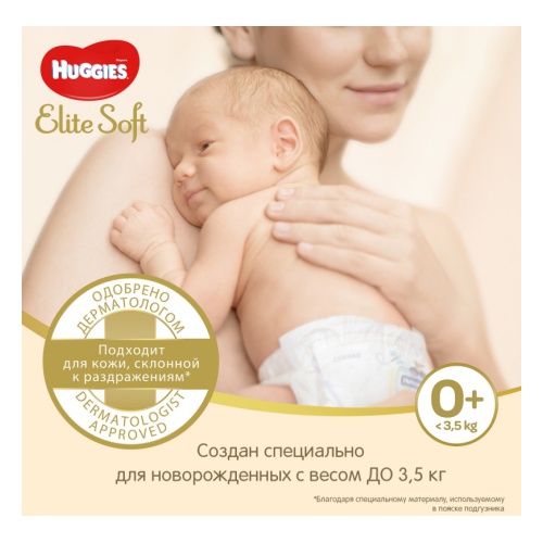 Новые Huggies Elite Soft для новорожденных размер 0+ - это подгузники, созданные специально для самых маленьких новорожденных с весом до 3,5 кг.