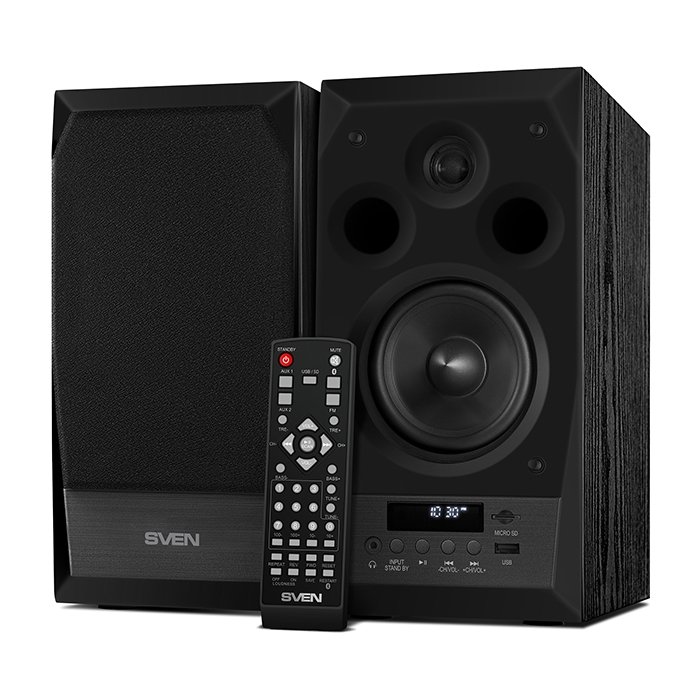 Дополнительная информацияФункционал SVEN MC-10 никого не оставит равнодушным. В ней есть практически все, что можно пожелать от хорошей акустики – удобный пульт управления, чтобы переключать музыкальные треки не вставая с дивана, встроенное радио, информативный дисплей, возможность воспроизведения музыки с SD-карт и USB flash, беспроводная передача звука по Bluetooth – в этом случае вы сможете проигрывать музыку со своего смартфона или планшета, при этом акустика будет поддерживать устойчивую связь с мобильным устройством на расстоянии до 10 м.