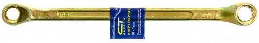 - Прочие особенности и свойства Ключ гаечный коленчатый имеет два кольцевых зева разных размеров. Профиль кольцевого зева имеет 12 граней, что увеличивает площадь соприкосновения рабочих поверхностей и снижает риск деформации граней крепежа при монтаже. Накидные рабочие части ключа смещены относительно его рукоятки, что позволяет работать в труднодоступных местах. Изготовлен из углеродистой стали. Твердость материала рабочей части ключа 42 HRC (требования ГОСТ – 41–46 HRC). Ключ имеет антикоррозионное покрытие из желтого цинка. Ключ гаечный коленчатый предназначен для монтажа и демонтажа резьбовых соединений.