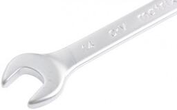 - Прочие особенности и свойства Ключ гаечный комбинированный с открытым и кольцевым зевом предназначен для монтажа (демонтажа) резьбовых соединений. Ключ изготовлен из хромованадиевой стали. Твердость материала рабочей части ключа 45 HRC (требования ГОСТ – 45–51 HRC). Ключ имеет антикоррозионное покрытие из хрома. Профиль кольцевого зева имеет 12 граней, что увеличивает площадь соприкосновения рабочих поверхностей и снижает риск деформации граней крепежа при монтаже. Угол наклона кольцевого зева относительно плоскости ключа в 15 градусов делает монтаж более удобным.