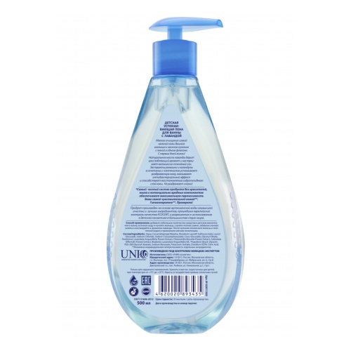 Мягкое очищение самой нежной кожи Вашего малыша и веселое купание с пеной в одном флаконе. С первых дней жизни! Натуральное масло лаванды дарит расслабляющий аромат и настраивает малыша на спокойный сон. Экстракты ромашки и календулы в сочетании с пантенолом успокаивают раздраженную кожу, оказывают антибактериальный эффект и способствуют восстановлению гидролипидного слоя кожи. Не раздражает глазки!