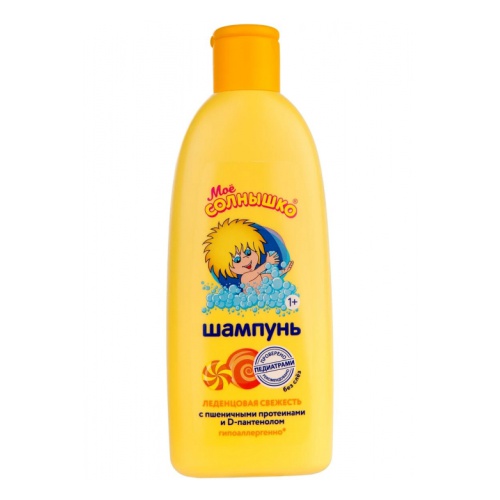 Шампунь для волос Моё Солнышко Леденцовая свежесть, 400 млНежный шампунь для ежедневного применения, бережно очищает волосы и кожу головы ребенка. Содержит пшеничные протеины и D-пантенол. Волосы становятся шелковистыми и легко расчесываются. Подходит для детей с 1 года. Не щиплет глазки Гипоаллергенно* Клинически проверено и рекомендовано педиатрами.* Формула создана для сведения к минимум риска возникновения аллергической реакции в случае индивидуальной непереносимости ингредиентов состава. Состав: вода, лауретсульфат натрия, кокамидопропилбетаин, кокоамфомоноацетат натрия, диэтаноламид жирных кислот кокосового масла, хлорид натрия, гидроксипропилтримониум гидролизат пшеничных протеинов, D-пантенол, ПЭГ-7 глицерил кокоат, динатрий ЭДТА, ароматическая композиция, кислота лимонная, ПЭГ/ППГ-15/15 диметикон, метилхлороизотиазолинон (и) метилизотиазолинон, СI 19140