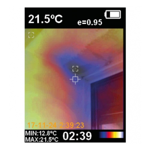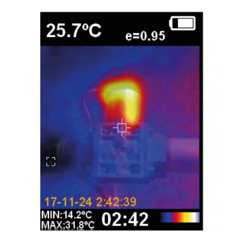 Режим выделения точек с максимальной и минимальной температурами упрощает работу по их поиску на объекте. Точки критических температур видно непосредственно на дисплее тепловизора. Полученные данные можно сохранять в виде снимков.
