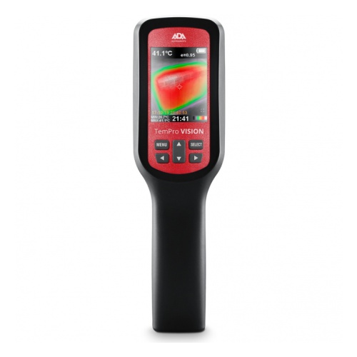 Тепловизор ADA TemPro VISION - электронное устройство для измерения температуры в ИК спектре в диапазоне −20°...+350°С. Прибор позволяет фиксировать видимое и инфракрасное (ИК) изображения вместе с измеренными данными и сохранять их на карте памяти для последующего анализа, а также составления отчетов. Тепловизор позволяет визуализировать проблемные участки в процессе проведения технического обслуживания оборудования и систем, а также контролировать производственный процесс, предупреждать риск возгорания, осуществлять поиск утечек тепла или скрытых тепловых коммуникаций.