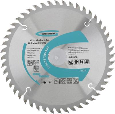 - Описание Пильный диск по дереву торговой марки GROSS предназначен для распиловки заготовок из мягких и твердых пород древесины, фанеры, ДСП. Изготовлен пильный диск из пружинной стали марки 65MN. Размеры диска 210 х 32 мм, с возможностью использовать переходник диаметром 30 мм. Форма зуба (ATB) с положительным углом наклона обеспечивает эффективную распиловку крупных заготовок. 48 режущих пластин изготовлены из твердого сплава, произведенного компанией CERATIZIT (Люксембург), и обладают исключительной стойкостью к окислению, истиранию и разрушению. Пайка пластины к диску осуществляется припоем с высоким содержанием серебра, гарантируя тем самым высокую надежность крепления.